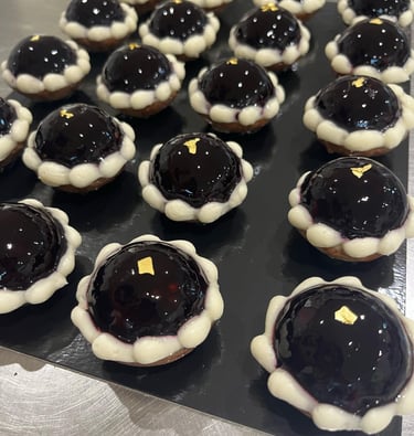 Tarte entremet mûres myrtilles vanille tonka noisettes
